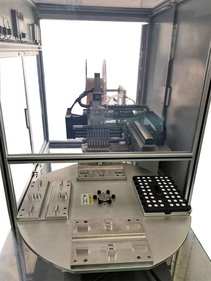 本设备采用四工位凸轮分割器的方式上料,可减少上料时间。(上料不影响同时贴片) 设备采用高精度滑轨模组组成X/Y/Z轴与四工位分割器配合进行高精度定位,从而实现准确的取料和放料。